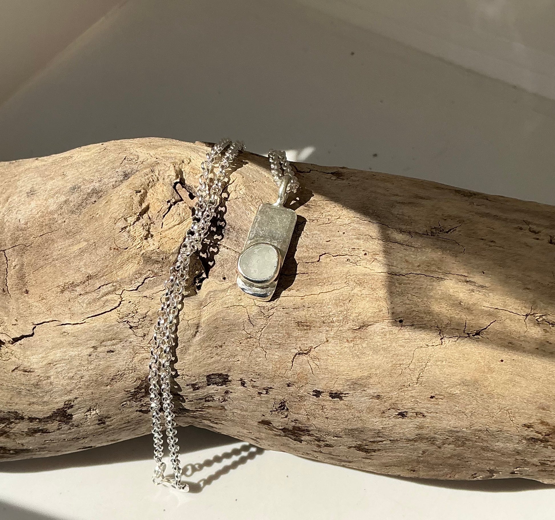 White Sea glass pendant