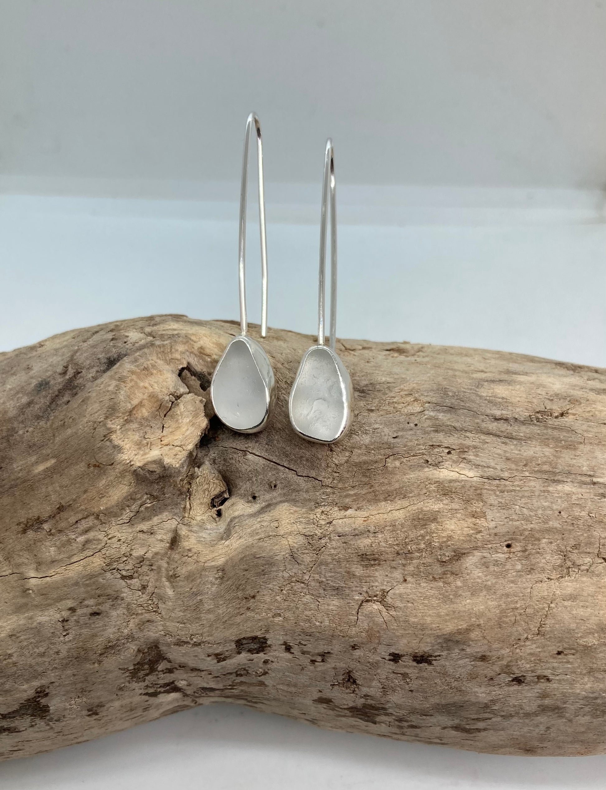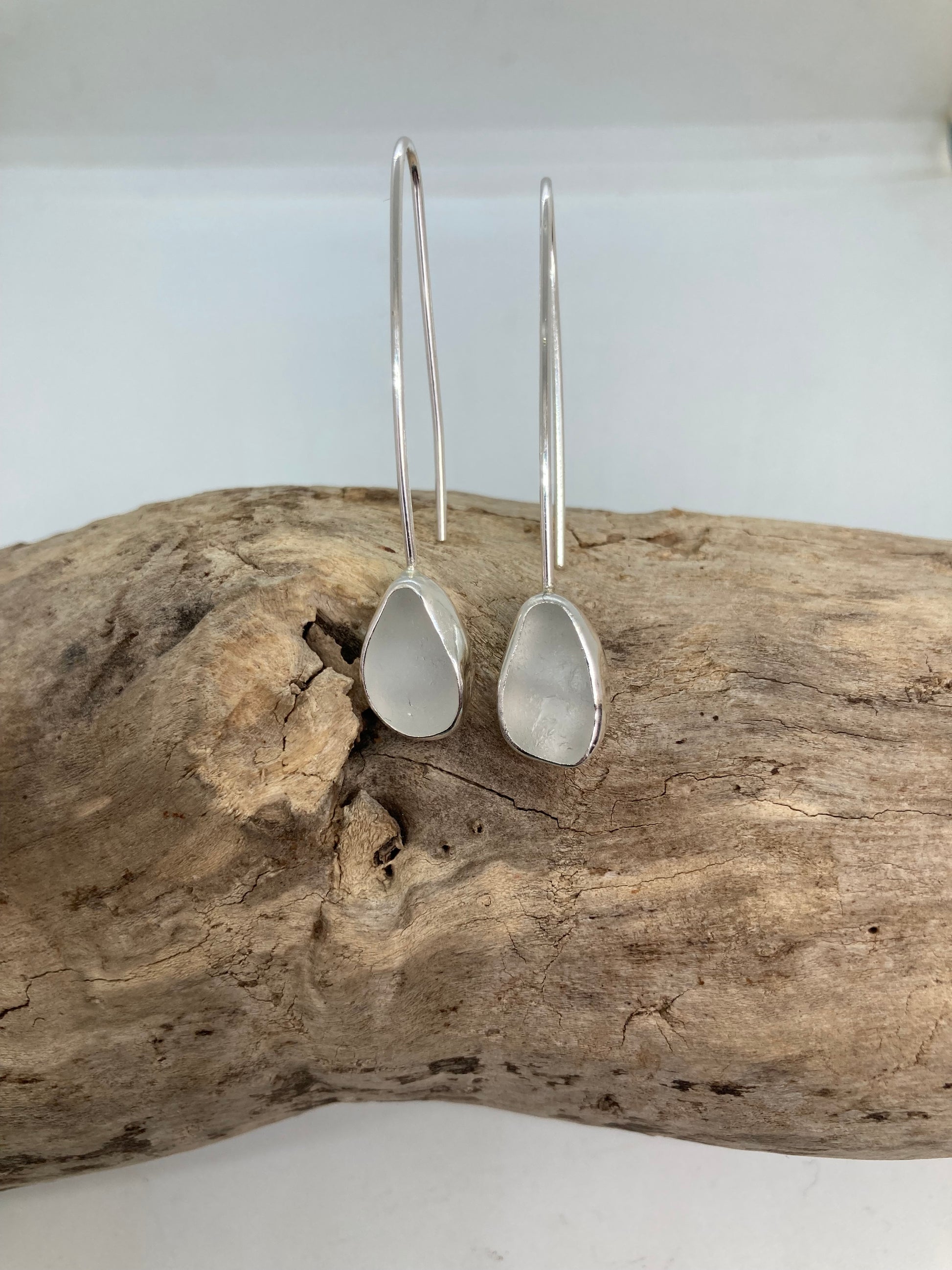 White Sea glass drop earrings